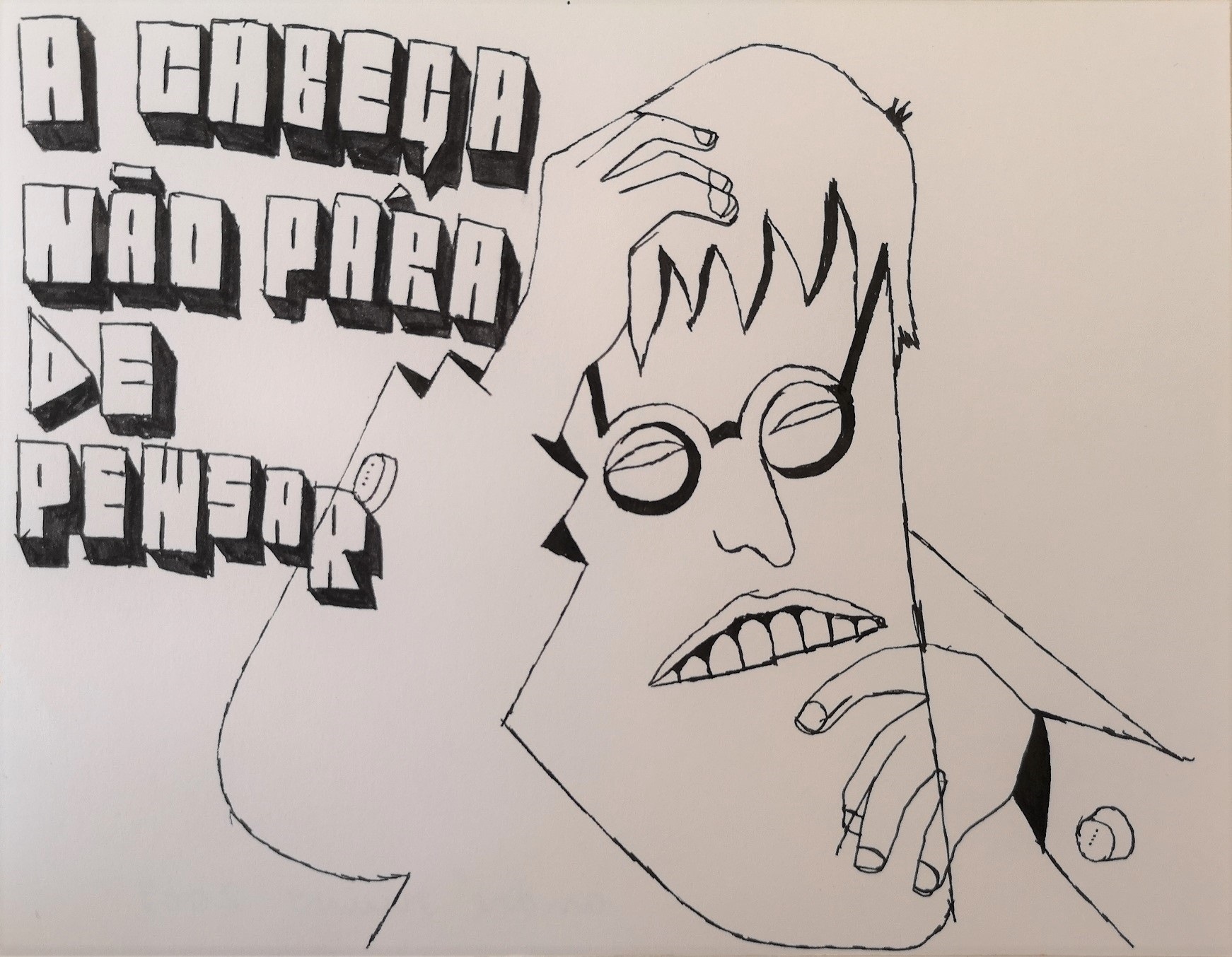 [A cabeça não para de pensar], 2003 Caneta esferográfica sobre papel 15 x 19 cm  Assinado e datado no verso.